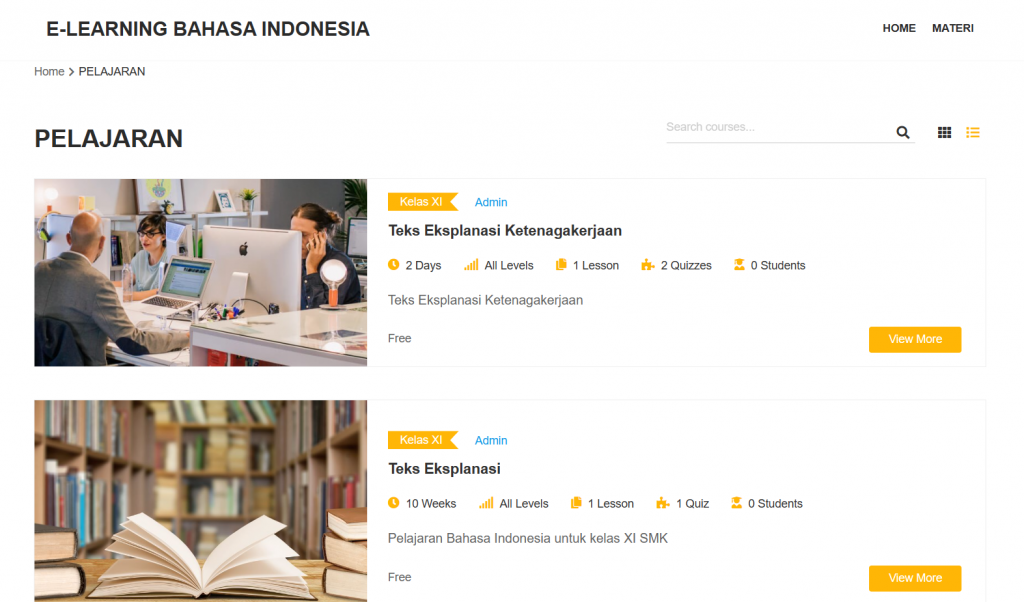 Berbagai pilihan materi pelajaran sesuai kelas yang bisa diakses oleh siswa saat berhalangan hadir di kelas nyata.